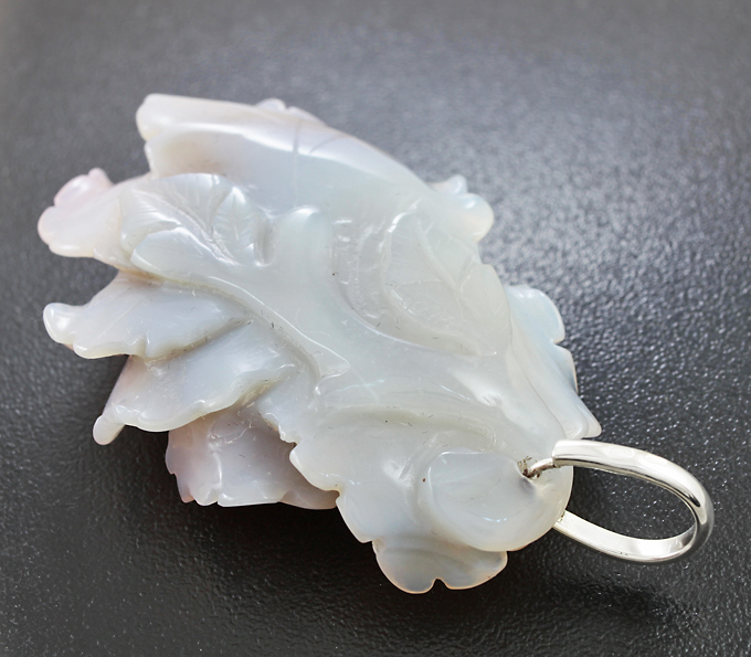 Вашему вниманию предлагается замечательный образец камнерезного искусства — камея-подвеска «Пион» из цельного халцедона с петлей из стерлингового серебра 925 пробы! Ручная работа! Не подвергалась окрашиванию. Размеры с петлей 70 х 40 х 15 мм. Вес 29 г.
