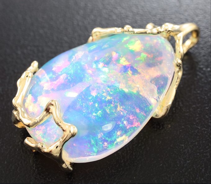 Вашему вниманию предлагается кулон из желтого золота 585 пробы с кристаллическим эфиопским опалом! Основные цвета опалесценции: красный, желтый, зеленый и синий. Пощадка кулона 35 х 22 мм. Вес изделия 7,5 г.Ниже приводятся ювелирные характеристики вставки.