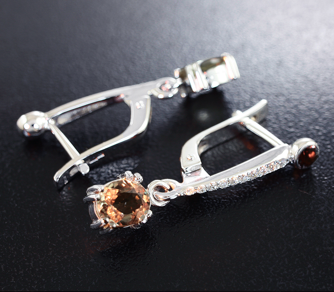 Серьги с гранатами со сменой цвета, диаспорами и бесцветными сапфирами