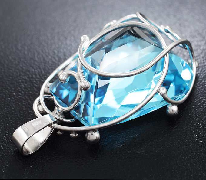 Вашему вниманию предлагается кулон из белого золота 585 пробы с топазом авторской огранки и лейкосапфирами! Диаметр дополнительной инкрустации 1,5 мм и 2 мм. Размеры кулона с петлей 43 х 27 мм. Вес изделия 17,3 г. Ниже приводятся ювелирные характеристики топаза.