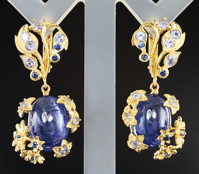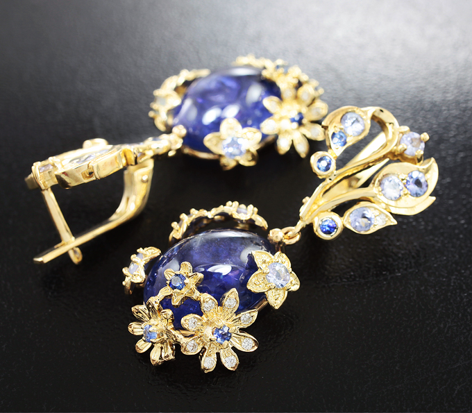 Комплект с кабошонами танзанитов, синими сапфирами и бриллиантами
