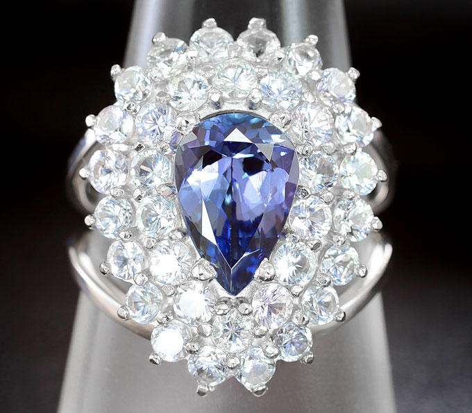 Кольцо c чистейшим танзанитом и бесцветными топазами