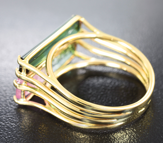 Вашему вниманию предлагается кольцо из желтого золота 585 пробы с турмалинами! Площадка 21 х 11 мм, высота 4 мм. Вес изделия 5,5 г. Размер 18,5. Ниже приводятся ювелирные характеристики вставок.