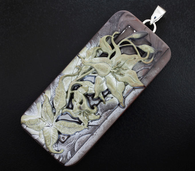 Вашему вниманию предлагается замечательный образец камнерезного искусства – камея-подвеска «Лилии» из стерлингового серебра (925 пробы) из цельной яшмы! Ручная работа! Не подвергалась окрашиванию. Размеры с петлей 72 х 28 х 7 мм. Вес 26,3 г.