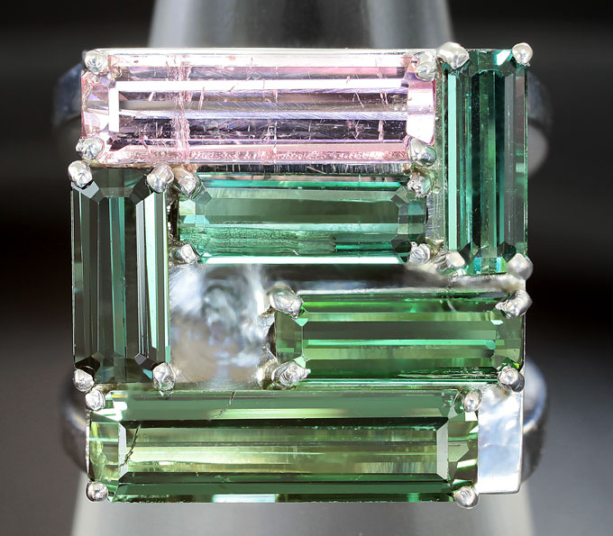 Кольцо c разноцветными турмалинами