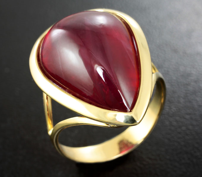 Вашему вниманию предлагается кольцо из желтого золота 585 пробы с рубином массой 21,2 карата! Размеры вставки 18 х 13 мм. Площадка 22 х 17 мм, высота 9 мм. Вес изделия 7,7 г. Размер 17.