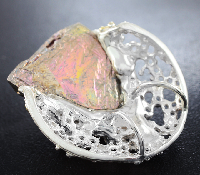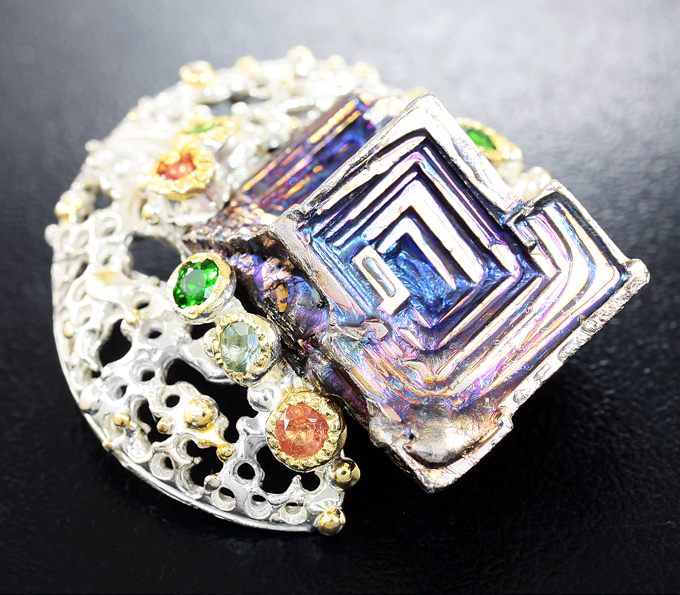 Вашему вниманию предлагается кулон из стерлингового серебра (925 проба) c висмутом, диопсидами и сапфирами! Изделие частично позолочено. Размеры вставок 2 мм и 20 х 17 мм. Площадка 34 х 31 мм. Вес изделия 21,4 г.