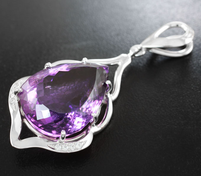 Вашему вниманию предлагается кулон из стерлингового серебра (925 проба) с аметистами и кубиком циркония! Диаметр дополнительной инкрустации 1,5 мм. Размеры кулона с петлей 58 х 24 мм. Вес изделия 11,7 г. Ниже приводятся ювелирные характеристики аметиста.