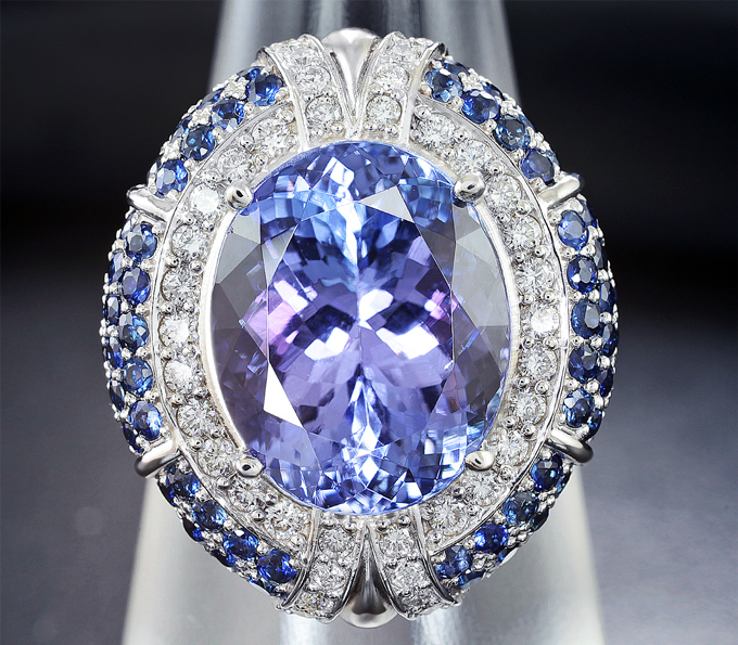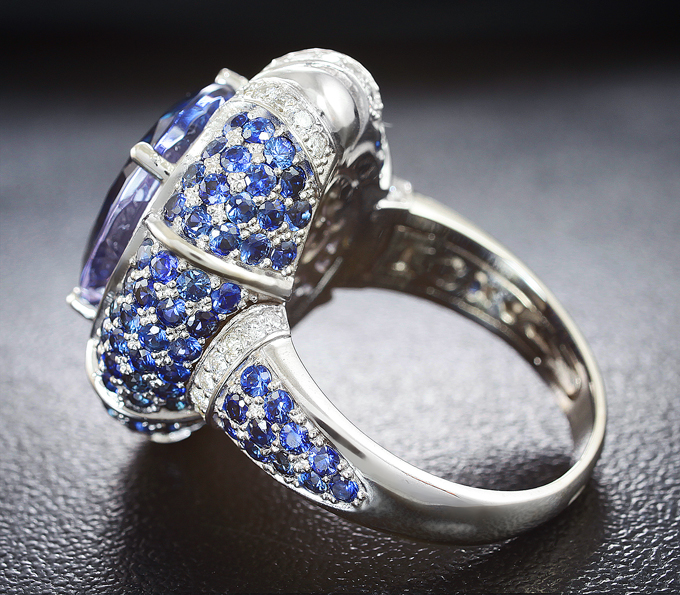 Кольцо с чистейшим танзанитом, синими сапфирами и бриллиантами