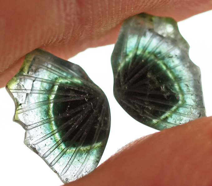 Серьги с резными турмалинами и кубиком циркония