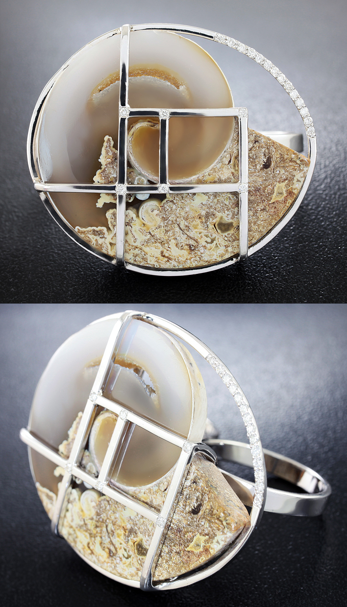 Комплект с агатизированными слайсами моллюска и бриллиантами