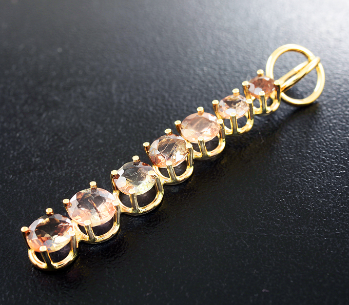 Вашему вниманию предлагается комплект (подвесы + кулон) из желтого золота 585 пробы с андалузитами! Размеры вставок от 3 мм до 6 мм. Вес комплекта 6,9 г.