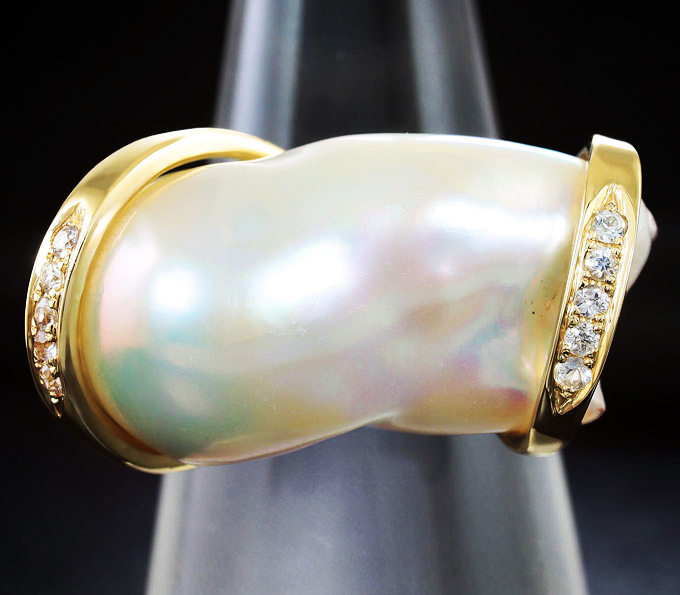 Вашему вниманию предлагается кольцо из желтого золота 585 пробы с жемчужиной барокко и лейкосапфирами! Исключительный люстр! Диаметр дополнительной инкрустации 1,5 мм. Площадка 27 х 15 мм, высота 11 мм. Вес изделия 8,2 г. Размер 17. Ниже приводятся ювелирные характеристики жемчужины.