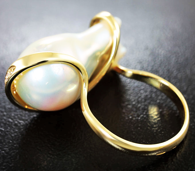 Кольцо с жемчужиной барокко и лейкосапфирами! Исключительный люстр