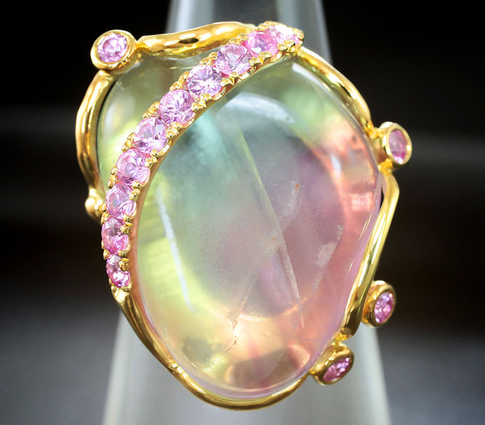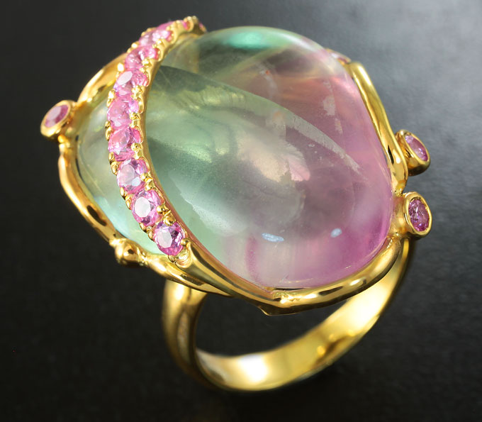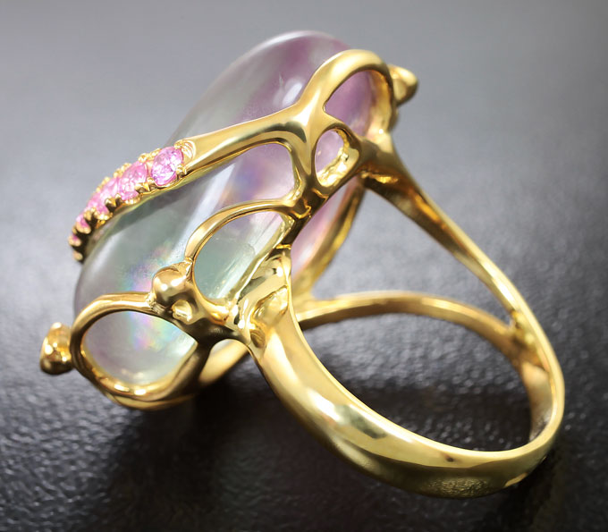 Кольцо с полихромным флюоритом и розовыми сапфирами