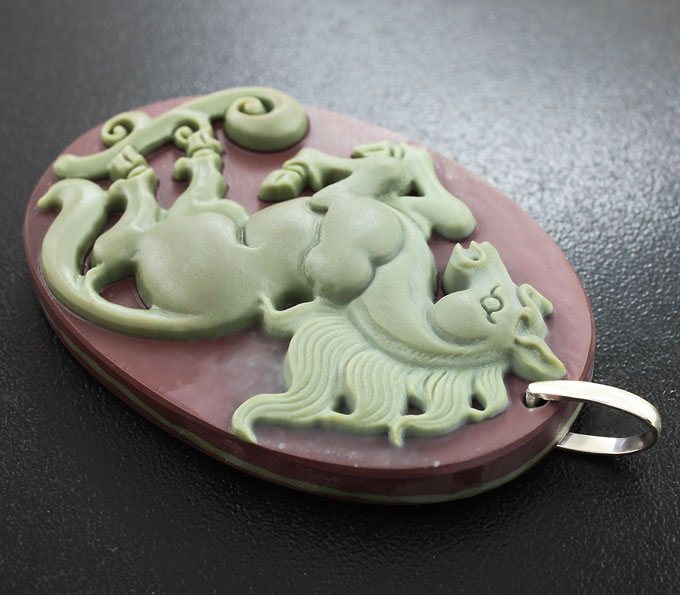 Камея-подвеска «Персидский конь» из цельной яшмы