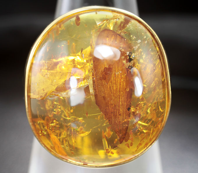 Кольцо c бирманский янтарем с крылом насекомого