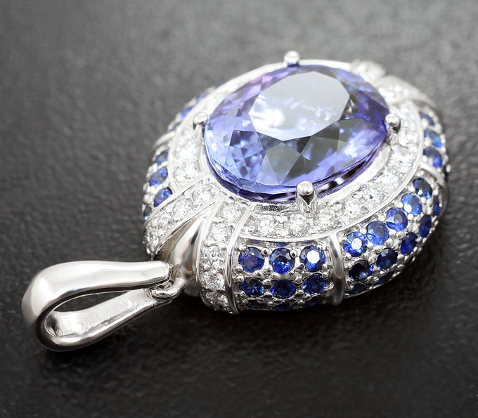 Кулон с топовым танзанитом, синими сапфирами и бриллиантами