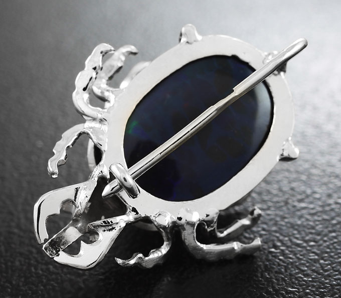 Вашему вниманию предлагается брошь из белого золота 585 пробы с кристаллическим черным опалом и цаворитами гранатами! Диаметр дополнительной инкрустации 1,25 мм и 3 мм. Площадка 25 х 19 мм. Вес изделия 3,9 г. Ниже приводятся ювелирные характеристики опала.