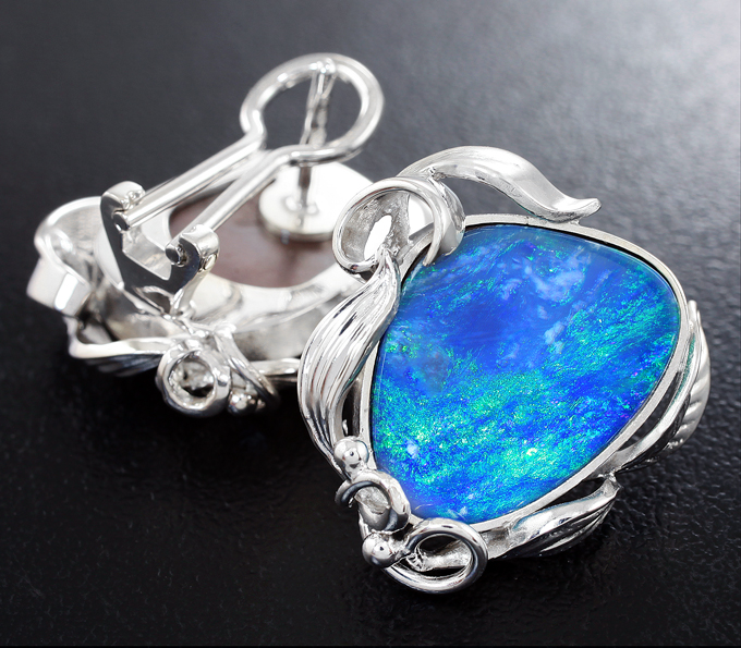 Серьги с австралийскими дублет опалами