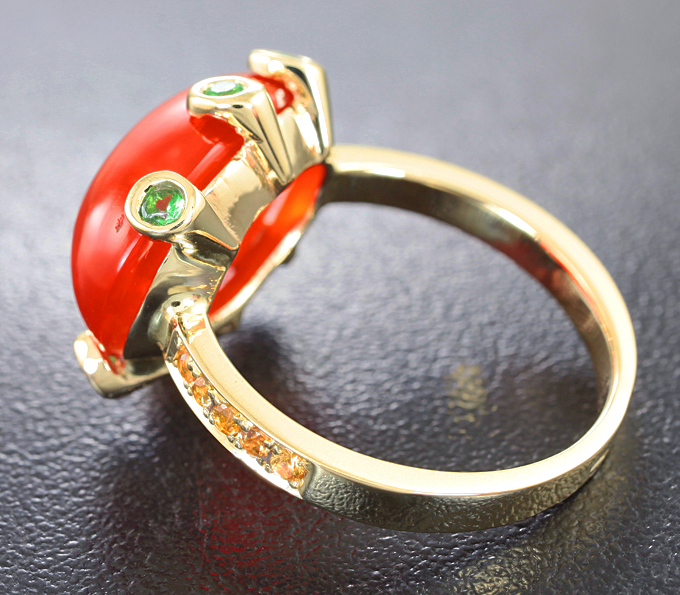 Кольцо c мексиканским огненным опалом, цаворитами гранатами и оранжевыми сапфирами