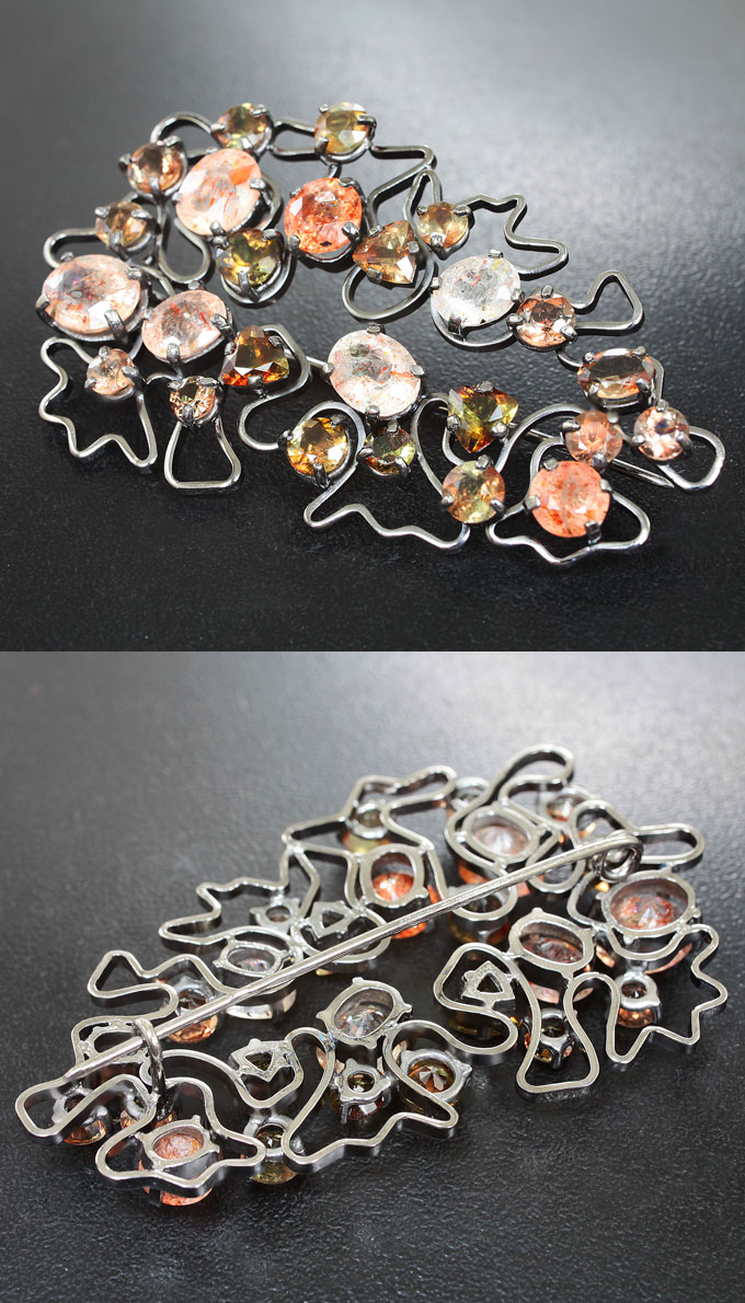 Вашему вниманию предлагается комплект (кольцо + брошь/кулон) из стерлингового серебра (925 проба) с солнечным камнем и андалузитами! Изделия с чернением. Вес комплекта 29,1 г.