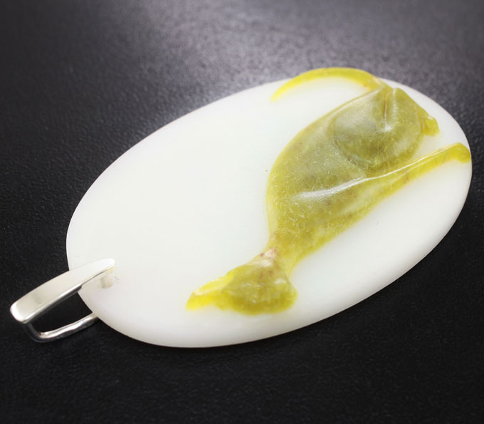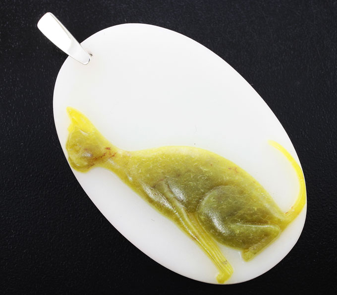 Камея-подвеска «Баст» из цельных лимонного и бесцветного нефрита