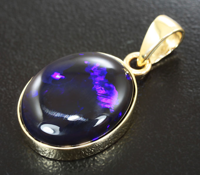 Вашему вниманию предлагается кулон из желтого золота 585 пробы с австралийским черным опалом! Основной цвет опалесценции: фиолетовый. Размеры кулона с петлей 29 х 15 мм. Вес изделия 3,8 г. Ниже приводятся ювелирные характеристики вставки.