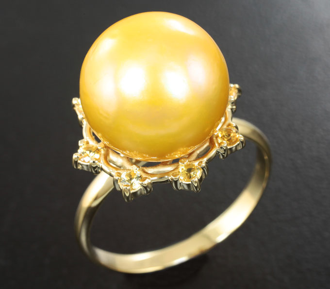 Кольцо с золотистой морской жемчужиной и желтыми сапфирами
