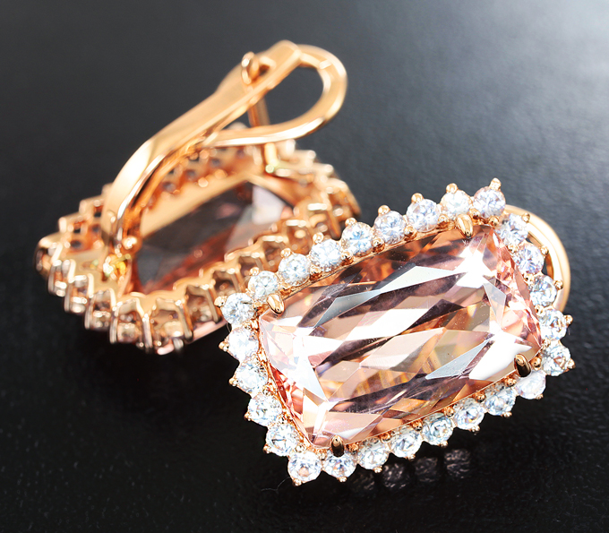 Вашему вниманию предлагаются серьги из розового золота 585 пробы с морганитами 14,8 карата и лейкосапфирами! Размеры вставок 2 мм и 16 х 10 мм. Площадка серег 21 х 15 мм. Вес пары 10,5 г.