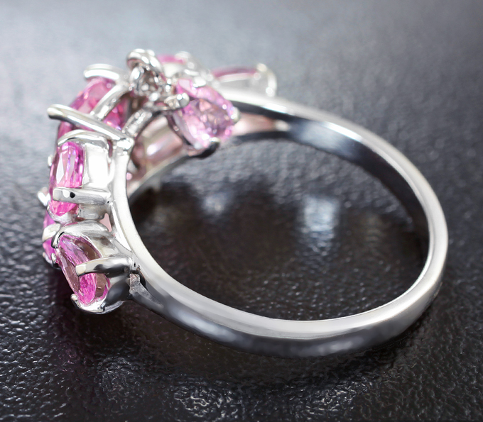 Кольцо с розовой шпинелью и пурпурно-розовыми сапфирами