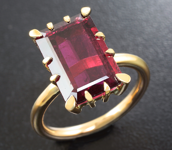 Вашему вниманию предлагается кольцо из желтого золота 585 пробы с рубеллитом топового цвета! Площадка 15 х 10 мм, высота 6 мм. Вес изделия 4,1 г. Размер 16,5. Ниже приводятся ювелирные характеристики вставки.