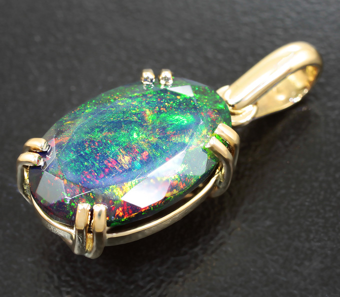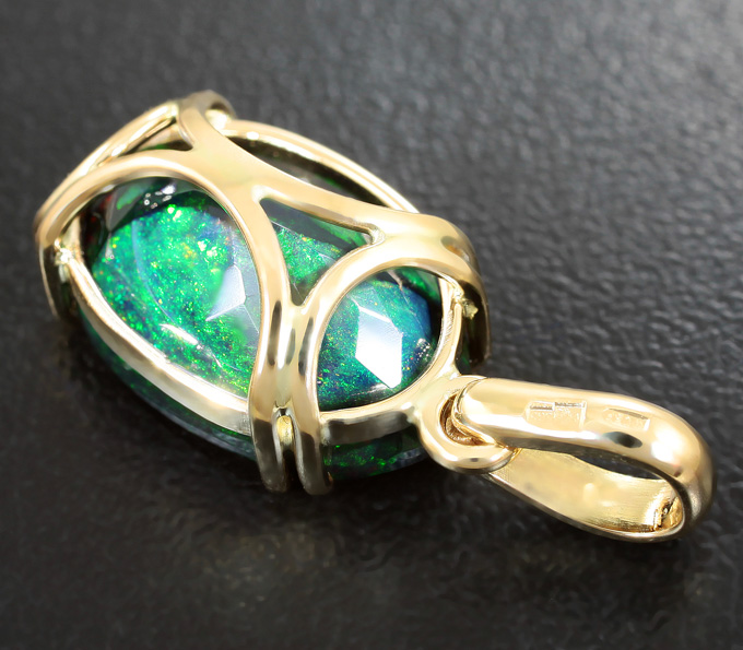 Вашему вниманию предлагается кулон из желтого золота 585 пробы с ограненным черным опалом! Основные цвета опалесценции: красный, желтый и зеленый. Размеры вставок 16 х 10 мм. Размеры кулона с петлей 26 х 11 мм. Вес изделия 3 г. Ниже приводятся ювелирные характеристики вставки.