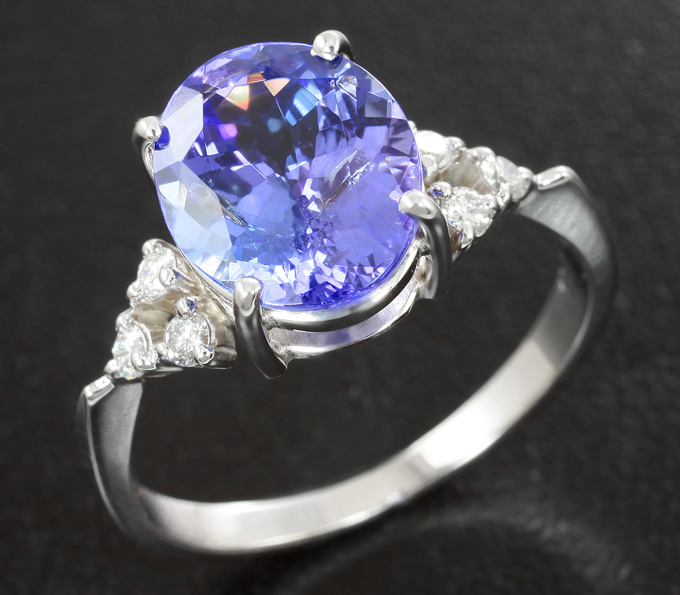 Вашему вниманию предлагается кольцо из белого золота 585 пробы с танзанитом и бриллиантами! Диаметр дополнительной инкрустации 2 мм. Площадка 16 х 11 мм, высота 6 мм. Вес изделия 3 г. Размер 18,5. Ниже приводятся ювелирные характеристики танзанита.