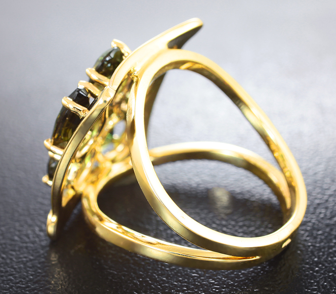 Вашему вниманию предлагается комплект (кольцо + серьги + кулон) из желтого золота 585 пробы с корнерупинами 10,76 карата! Размеры вставок от 3,5 мм до 9 х 5 мм. Вес комплекта 18,8 г.