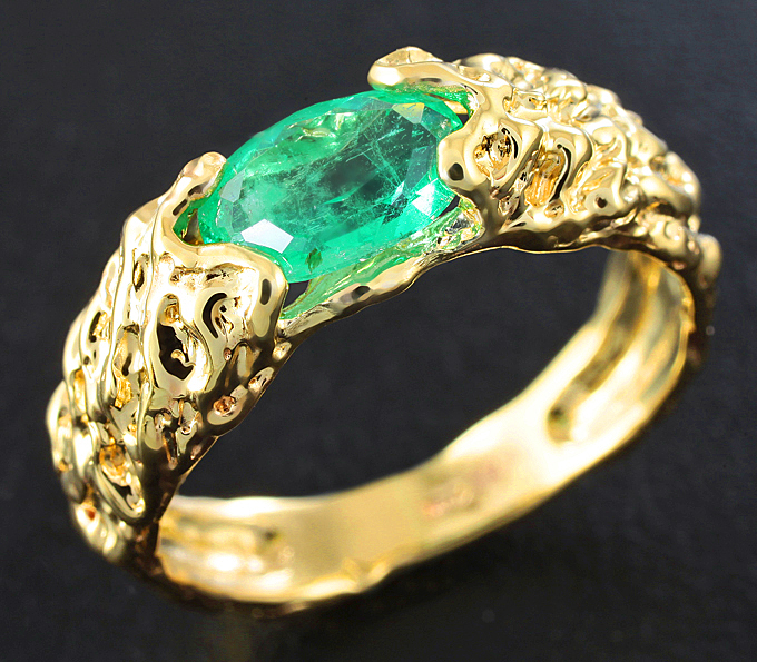 Вашему вниманию предлагается кольцо из желтого золота 585 пробы c уральским изумрудом! Ширина площадки 7 мм, высота 3 мм. Вес изделия 4,3 г. Размер 18. Ниже приводятся ювелирные характеристики вставки.