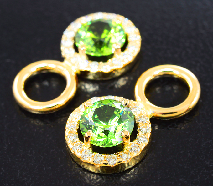 Подвесы для серег с уральскими демантоидами и бриллиантами