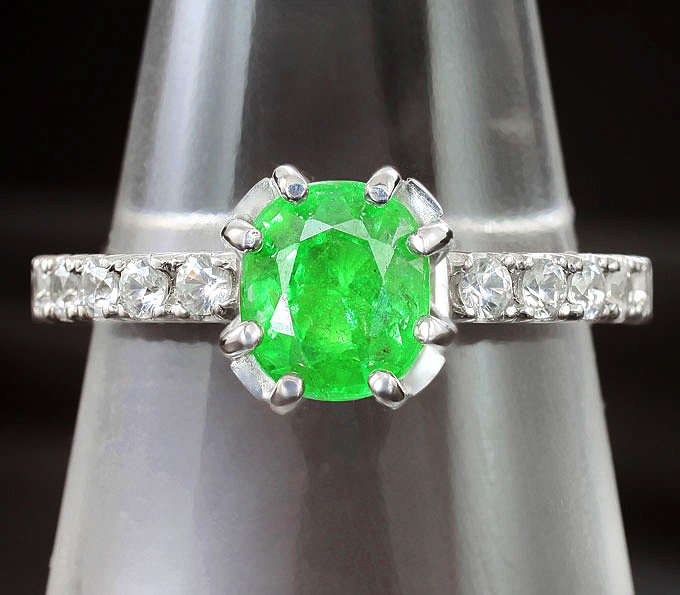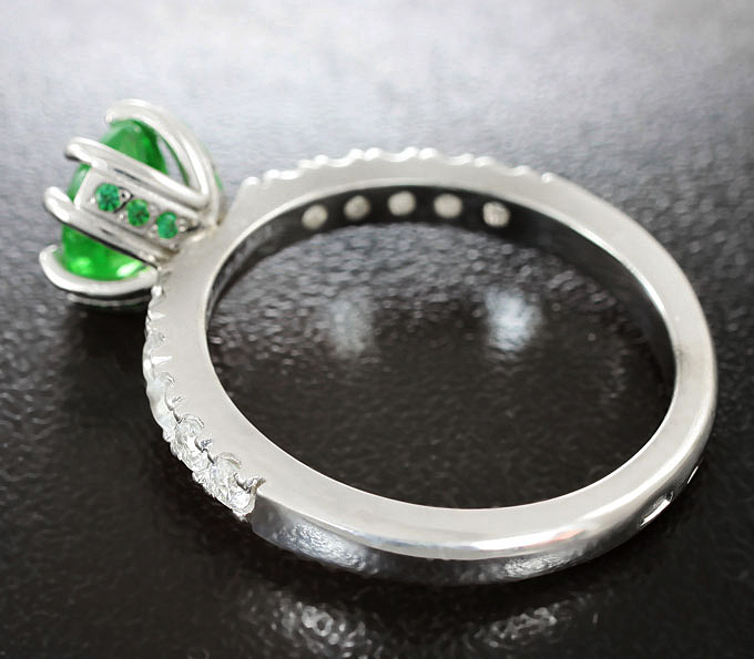 Кольцо c ярким цаворитом гранатом, цирконами и зеленым кубиком циркония