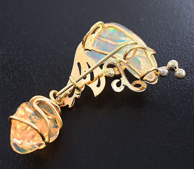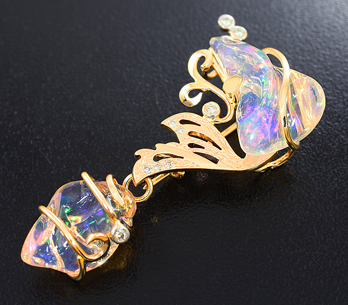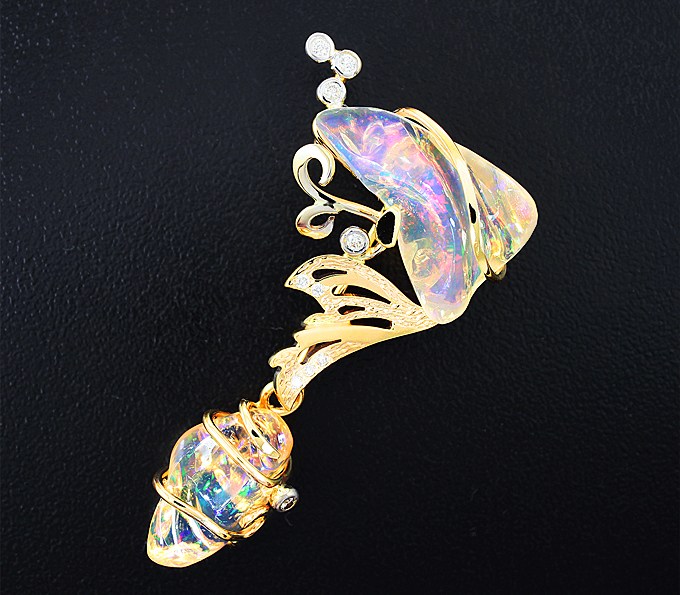 Кулон с кристаллическими эфиопскими опалами и бриллиантами