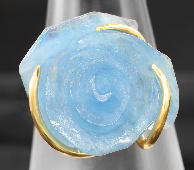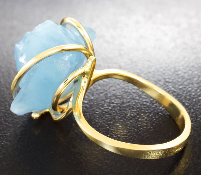 Вашему вниманию предлагается кольцо из желтого золота 585 пробы c резным забайкальским аквамарином! Площадка 19 х 18 мм, высота 15 мм. Вес изделия 7,5 г. Размер 17,75. Ниже приводятся ювелирные характеристики вставки.