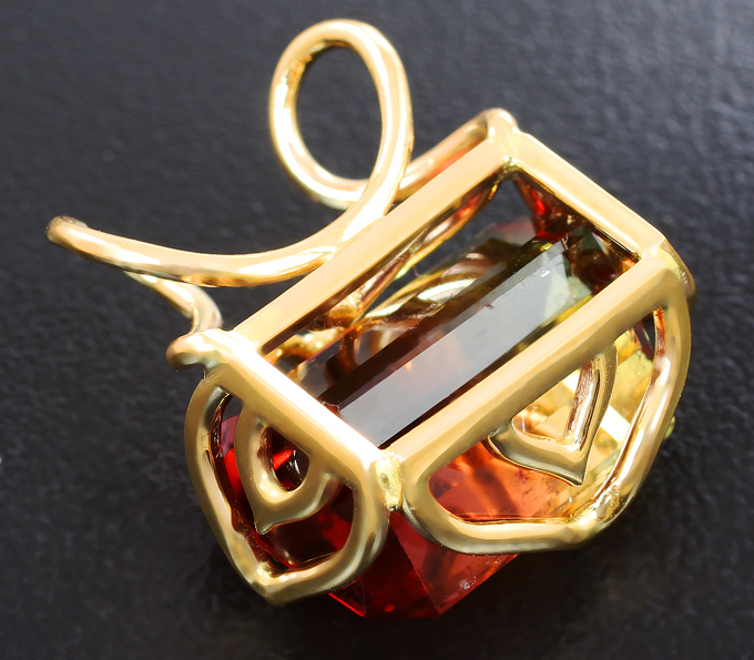 Вашему вниманию предлагается кулон из желтого золота 585 пробы с крупным полихромным турмалином! Размеры вставок 19 х 17 мм. Площадка кулона 19 х 17 мм. Вес изделия 4,6 г. Ниже приводятся ювелирные характеристики вставки.