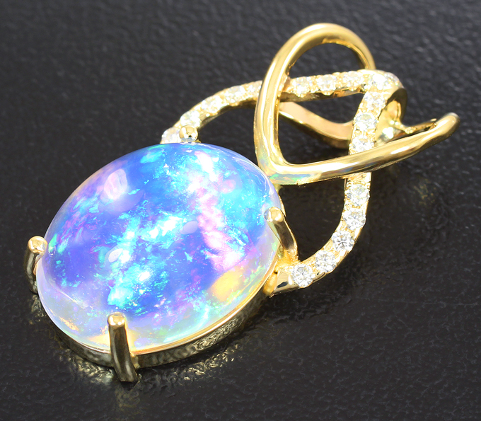 Кулон с кристаллическим эфиопским опалом и муассанитами