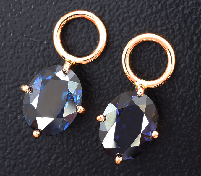 Вашему вниманию предлагаются подвесы для серег из желтого золота 585 пробы с синими шпинелями 2,6 карата! Размеры вставок 7,5 х 5,8 х 3,7 мм и 7,6 х 6 х 4 мм. Размеры подвесов 14 х 7 мм. Вес пары 1,1 г.