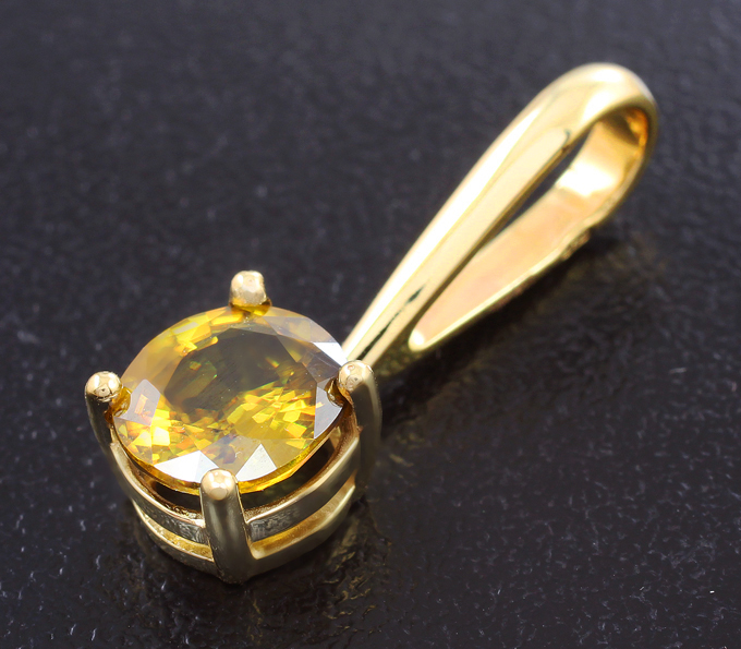 Вашему вниманию предлагается кулон из желтого золота 585 пробы с золотистым сфеном! Размеры кулона с петлей 22 х 7 мм. Вес изделия 1,6 г. Ниже приводятся ювелирные характеристики вставки.