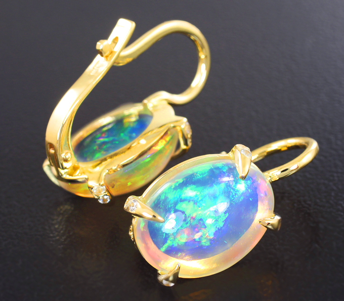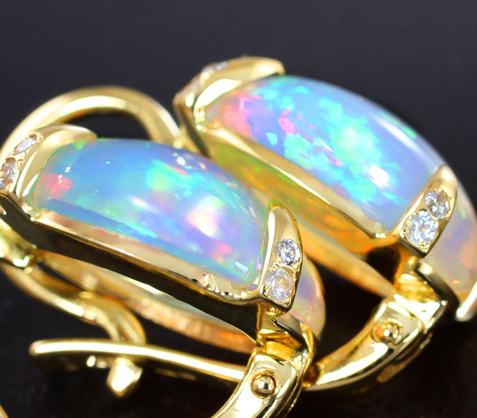 Серьги с кристаллическими эфиопскими опалами и бесцветными цирконами