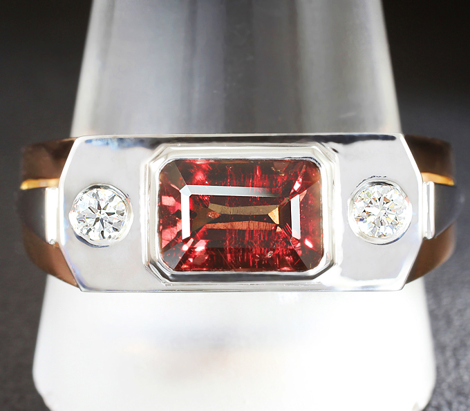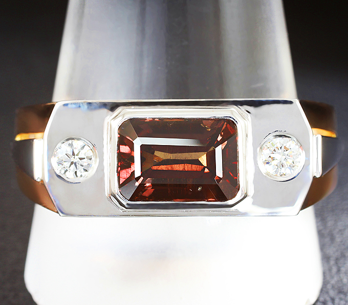 Кольцо с гранатом 3,7 карата и бриллиантами