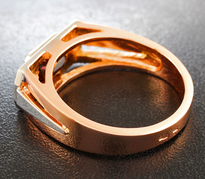 Вашему вниманию предлагается кольцо из розового и белого золота 585 пробы с гранатом и бриллиантами! При смене освещения камень меняет цвет с желтовато-зеленого на оранжевато-красный. Диаметр дополнительной инкрустации 3 мм. Площадка 20 х 9 мм, высота 6 мм. Вес изделия 10,7 г. Размер 22. Ниже приводятся ювелирные характеристики граната.