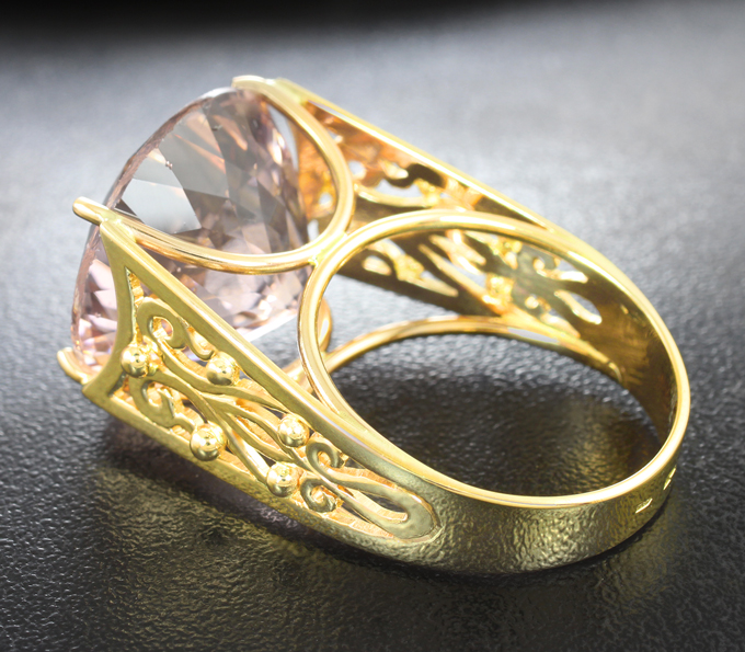 Вашему вниманию предлагается кольцо из желтого золота 585 пробы с чистейшим крупным морганитом! Площадка 18 х 17 мм, высота 13 мм. Вес изделия 10,3 г. Размер 19,75. Ниже приводятся ювелирные характеристики вставки.