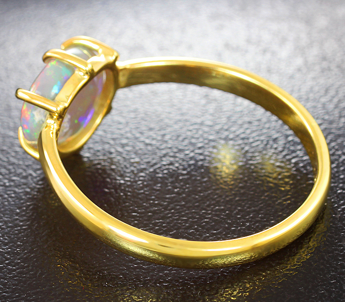 Вашему вниманию предлагается кольцо из позолоченного серебра 925 пробы c австралийским solid опалом! Опалесценция всеми цветами радуги! Площадка 10 х 10 мм, высота 5 мм. Вес изделия 2,3 г. Размер 20. Ниже приводятся ювелирные характеристики вставки.
