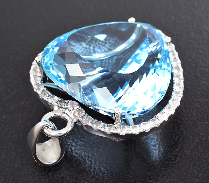 Кулон с чистейшим крупным голубым топазом 39,22 карата и лейкосапфирами